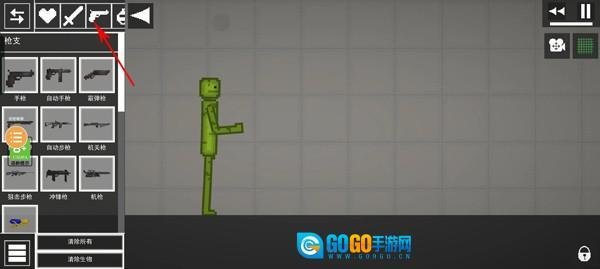 胳膊停在半空后,我们得在左上角找到枪械图标,通过它来选择枪械。