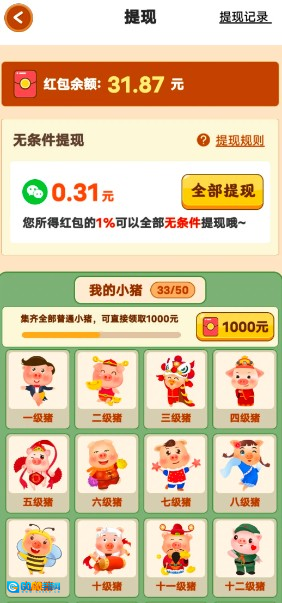 养猪能赚钱,这款养猪游戏真的超好玩,玩起来轻松就能赚钱,而且还可以提现呢!