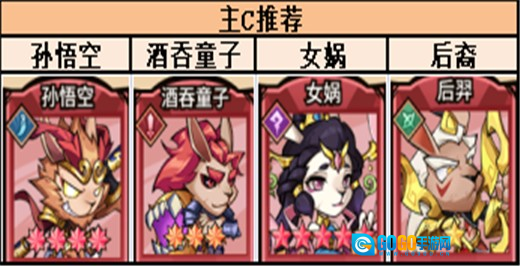 目前测评下来适合作为C位培养的英雄有:孙悟空、酒吞童子、女娲、后羿