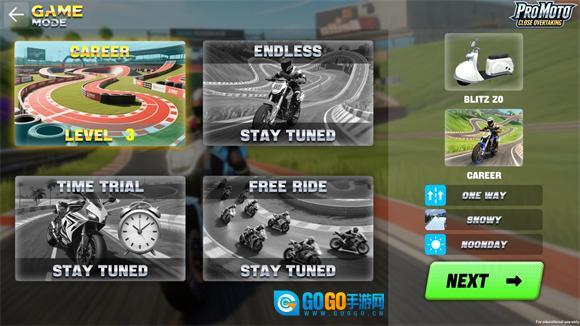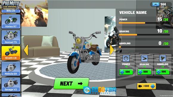 点击屏幕后可以选择不同的摩托车来驾驶。