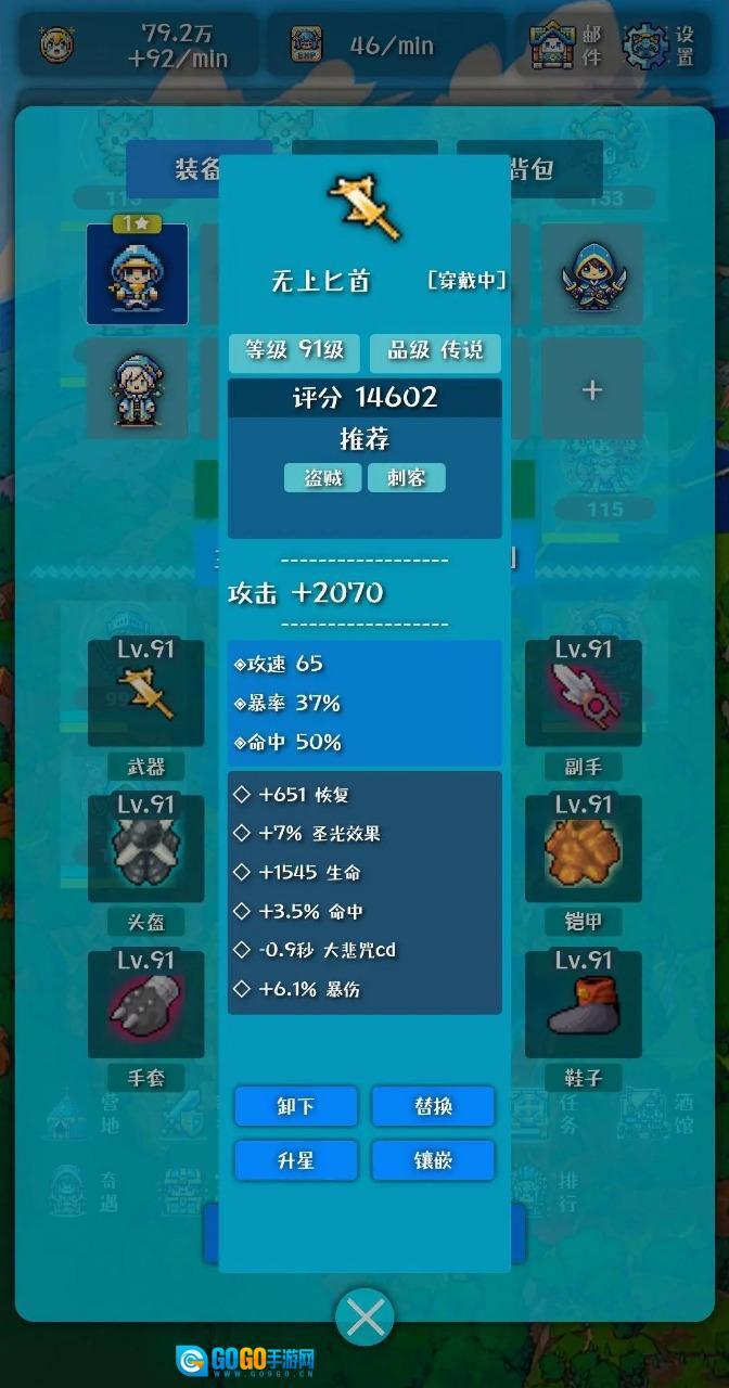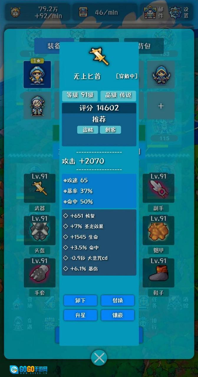 最后说下装备这块,装备里的武器和副手有概率刷出减技能冷却的极品词条,这能提高技能释放的频率;至于装备的其他属性,就朝着攻击、生命、暴击以及爆伤这些方向去堆就好。