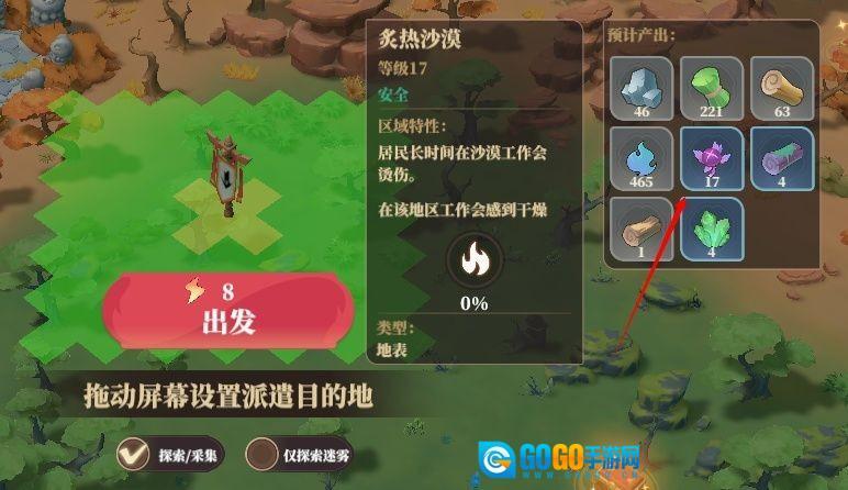 探索地图边界能发现高级区域的资源,消耗8点沙漠体力就能收获17朵沼泽花,这收益简直太划算了!