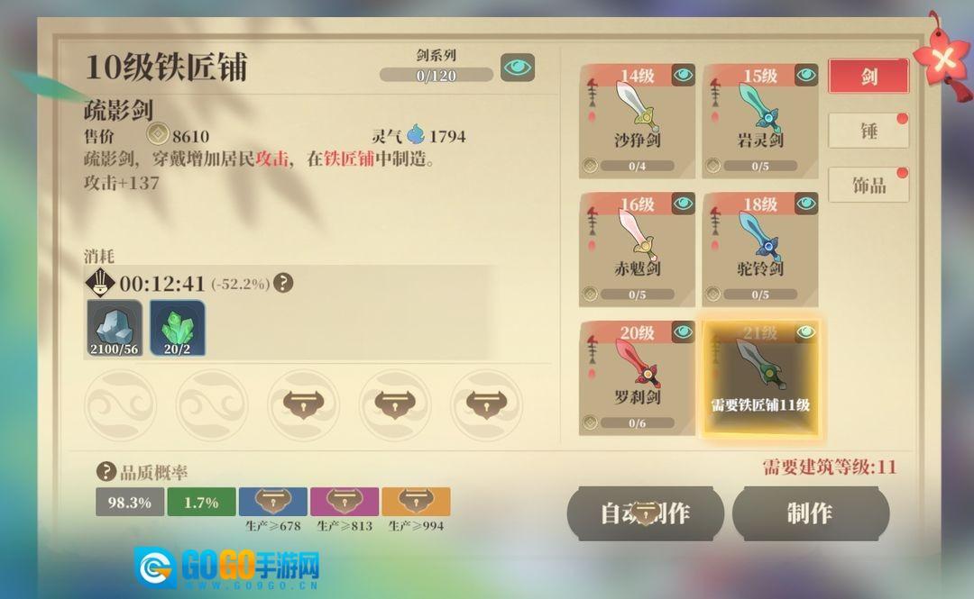 若选择以物理伤害为核心的发展方向,建议优先提升锻造工坊的等级。该工坊可产出剑、锤类武器及饰品,其中剑是多数将领与暗影护卫的常用装备,而锤则是前排防御型士兵不可或缺的武器。