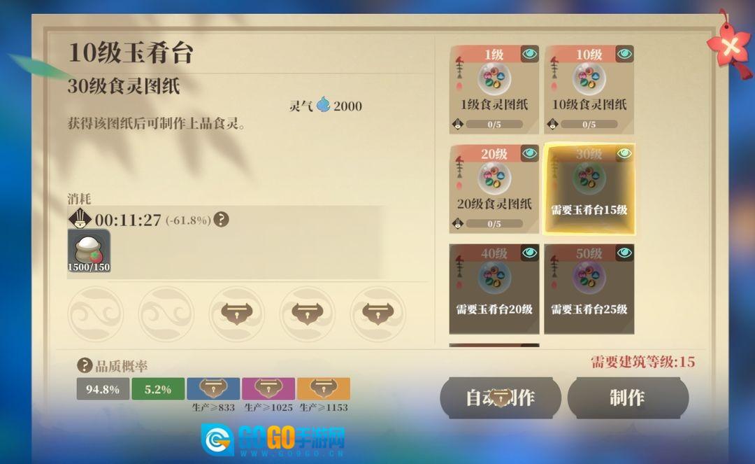 玉肴台是获取食灵的核心渠道,提升它的等级能解锁更高级别的食灵。不过,并非每次升级都能解锁新的可制作食灵,因此不必急于优先升级。建议城主们在角色等级即将或已经能适配更高等级食灵时,再升级玉肴台,这样就能制作对应等级的食灵来增强战力了。