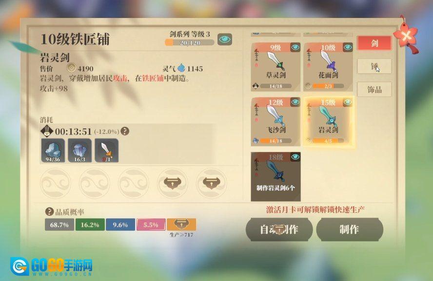 解锁下一级装备后,需立即切换至该装备的制作流程;若建筑等级未达要求,则要马上升级建筑,以此确保生产高效运转,避免重复操作与资源浪费。