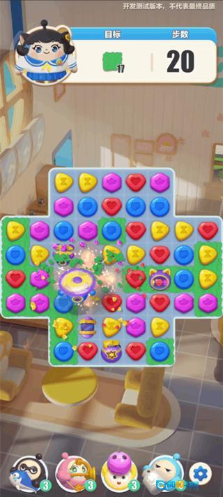 游戏采用经典三消玩法,玩家需消除相同的方块;