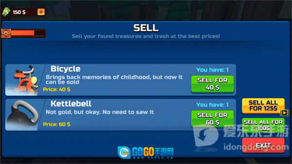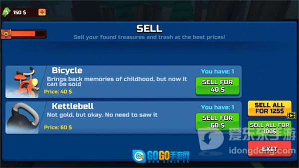 前往商店将挖掘出的金币出售,得到货币。