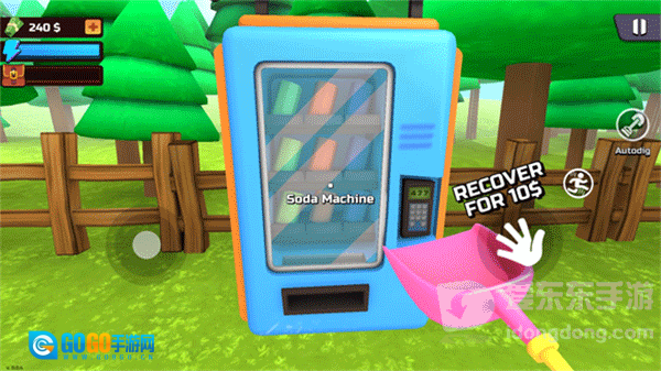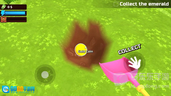 多次点击互动键后能挖出一枚金币,把准心对准金币就能将其拾起。