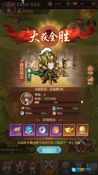 当然也别忘了领取通关奖励,这些奖励里的好东西可是能用来提升武将实力的哦。