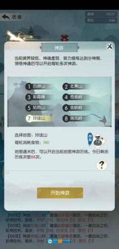 只要放弃100次神游的常规等待,其实有些处于“咸鱼”阶段的玩家,平时每天的神游次数本就不满100次;等修为到了金丹期后,就可以集中狂刷100次神游——每次神游按4分钟的间隔来操作,进去两秒就主动结束。如果这次神游触发了奇遇,系统肯定会把提示刷新在主界面;要是没出奇遇,就继续重复刷。这么刷满100次,奇遇是肯定会出的,而且全程也就花几分钟时间。到了第二天,还能接着用同样的方法刷100次元妥罗汉;等解锁分神功能后,刷够300次,对应的奖励也肯定能出。