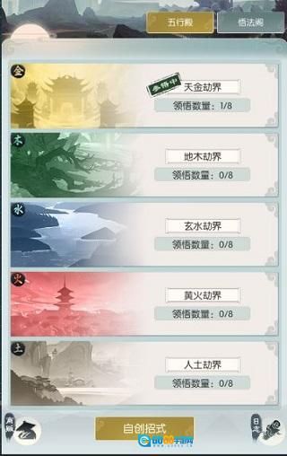 点击参悟按钮,等把这个图谱参悟完毕,就能激活对应的属性加成。领悟图谱后,各位就可以着手选择自创功法了。点击主界面的“自创招式”选项,选好基础招式,再从已经参悟过的图谱里挑一个,就可以开启自创功法的流程。但要特别说明的是,只有等级达到10级的基础招式,才能当作自创招式的基础;没到10级的基础招式,是不具备这个资格的。