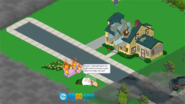 这款游戏的剧情脉络与原作动画保持一致,核心玩法围绕角色培养展开,延续了系列标志性的荒诞幽默基调。游戏开篇便上演了一场别开生面的冲突——火鸡军团与彼得·格里芬的激烈交锋,在这场夸张的对决之后,玩家需要通过点击操作唤醒昏迷的彼得,至此游戏的主线内容才正式开启。