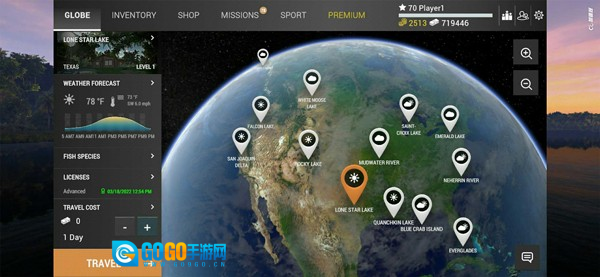 加载完成后进入游戏界面,第一步是在地图上确定钓鱼的位置。