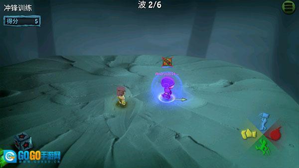 完成新手教程后,你将进入练习演练环节。在关卡中会随机出现各类盒子,你需要一边收集盒子,一边与对手展开战斗。左上角显示的是你的得分情况,加油击败你的对手吧!