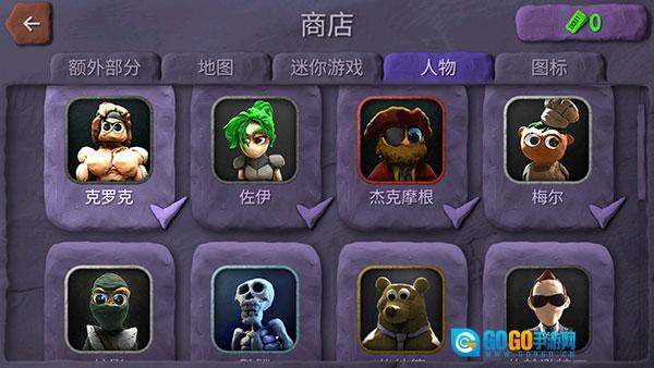 右下角的商店里有不少人物、角色、游戏地图和图标介绍,你可以自由查看,选好喜欢的角色后点击【开始战斗】就行。