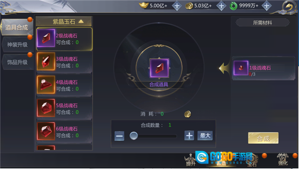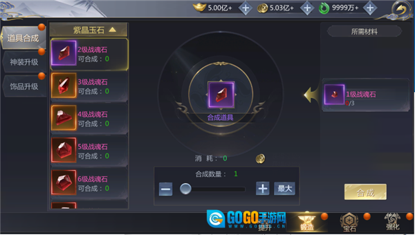 在该功能模块中,玩家能够对宝石类与杂物类这两种不同类型的物品进行合成操作。而每一次执行合成物品的动作时,系统都会扣除一定数量的金币作为必要的消耗。