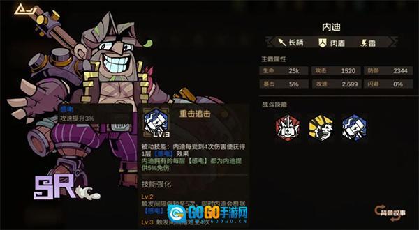 接下来重点聊聊内迪。在雷属性角色中,她是相当出色的前排坦克——二技能能同时触发嘲讽效果与生命回复,更关键的是其被动赋予的减伤机制:当身上叠满10层感电状态时,可获得50%的伤害减免;而在雷元素队伍里,10层感电很容易达成,这意味着她作为前排能稳定保持高额减伤,生存能力极强。不过内迪存在一个明显局限:这个核心的被动减伤效果需要角色达到三星才能解锁,因此低星阶段的她暂时无法发挥这一优势。
