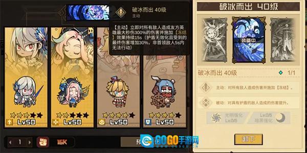 这里调整了前排的配置,把原本的承伤位换成了冰系的哈伦克。虽然哈伦克只是张R品质的卡,但实际扛伤能力还不错。不过这么调整的核心原因,是为了搭配时光之契这个效果——它要求队伍里必须有一位冰属性英雄才能生效,而这个效果用来应对带护盾的BOSS时,破盾效率特别高。