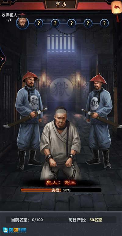 被捕获的囚徒可在监牢内接受惩戒,每次执行需消耗10点声望,过程中能随机获取粮草、铜钱、各类丹药、提升亲密度与容貌的器物、通宝、强化符卷等资源。不同囚徒在惩戒中损失的生命值存在差异,需将当前囚徒的生命值耗尽后,方可对下一名囚徒实施惩戒。此外,各囚徒对应的掉落物品各不相同,排列顺序越靠后的囚徒,其掉落的物品品质越优。声望会在每日凌晨依据个人的日常产出量(该产出量与关卡通关数量相关)进行补充,当日剩余的声望会予以保留,直至达到设定的存储上限。