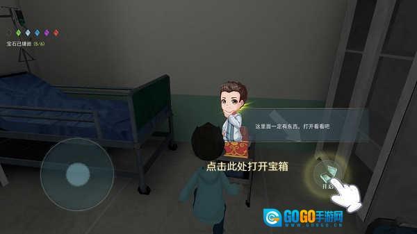 要打开逃亡的大门,得先在门上镶满6颗宝石才行。你需要去那座荒废的医院里找宝箱,打开宝箱取出里面的宝石,再带着这些宝石去逃生大门那里。