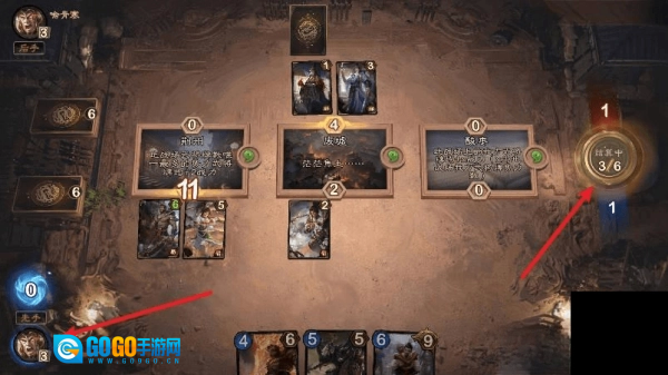 2. 进入对局后,游戏内设有三个暗置的战场。每个回合会揭晓一个战场,直至第三个回合所有战场全部亮置。不同的战场各自带有独特效果,且每个战场中,己方与敌方放置的卡牌数量均最多不超过4张。