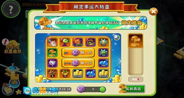 在限定幸运大转盘有几率抽中植物。
