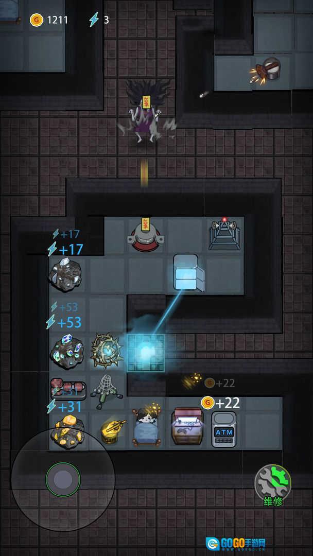 开局先把床铺升级并造两座炮台——这会儿猛鬼还没出现,赶紧提升床的等级能更快攒金币;接着再升级门,之后可以暂时停下床的升级进度,优先把精力放在升门上,不然很容易被猛鬼冲破防线;等门升级到需要电力的阶段,再去商店买游戏机,不然也容易被猛鬼突破。