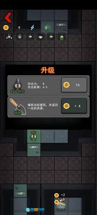 2、开局先升级门,然后建造炮台。