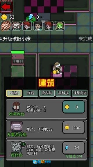 4、开局先建造2到3个初级炮台,用来抵挡住鬼的第一波攻势,如果是和舍友面对面一起玩的话,小编建议放一个就够了。