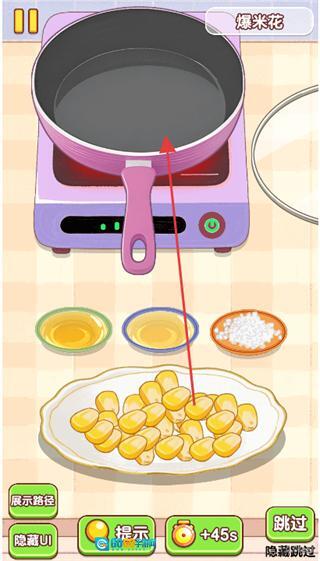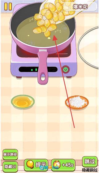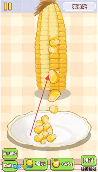 1、把玉米上的玉米粒剥下来,收集到盘子里,现在这一关卡是爆米花。
