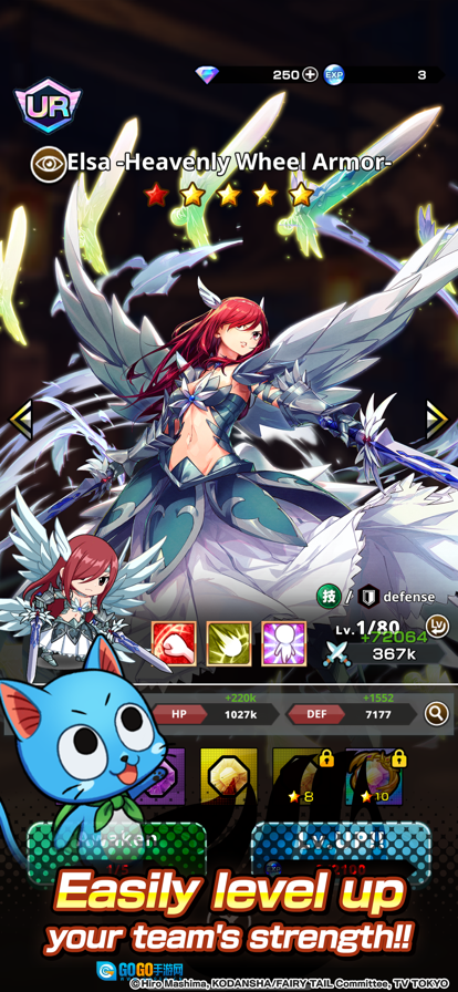 1、游戏里的角色均来自动漫,数量超过80个,像米拉杰、卡娜、伽吉鲁、朱比亚等人气角色都在其中。
