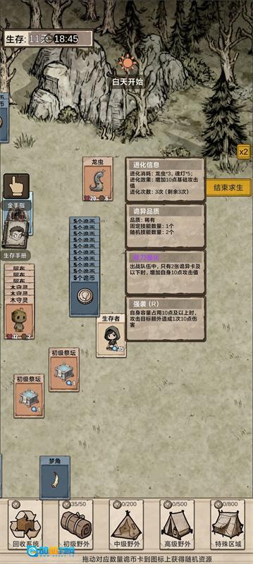 诡异能够消耗同名诡异与材料来完成进化(进化无需借助工作台,直接堆叠就能实现),进化可以增强基础属性,而且品质越好,进化的次数也就越多。