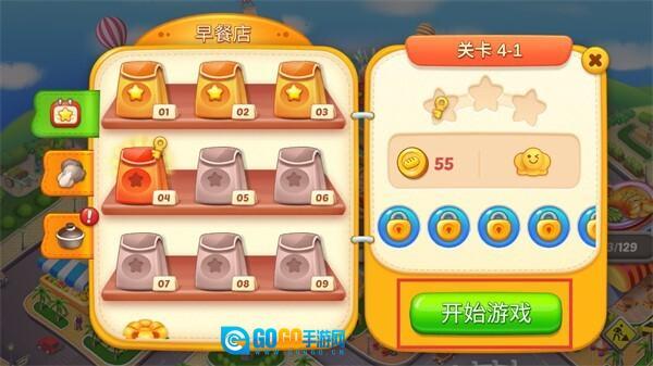 1、点击【开始游戏】按钮,开启该关卡的早餐经营挑战。