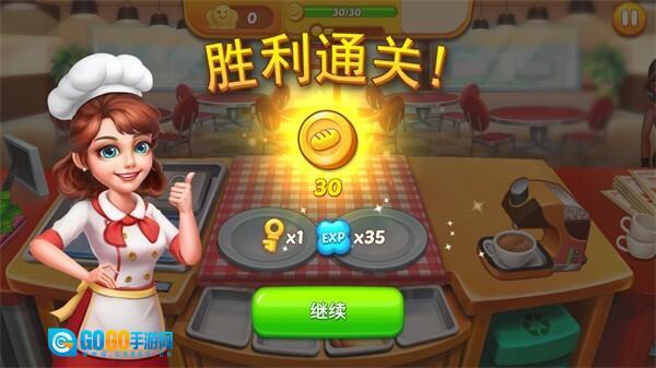4、当屏幕上显示【胜利通关】的提示后,请点击界面中的【继续】按钮,这样就能进入到接下来的经营关卡中。