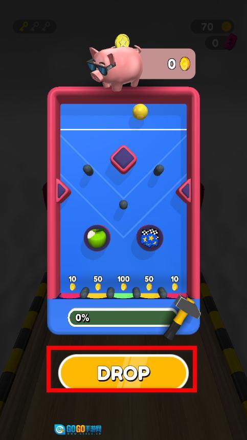 4、当出现机关界面时,点击下方的DROP按钮,使球下落以触发机关,从而推进游戏进程。