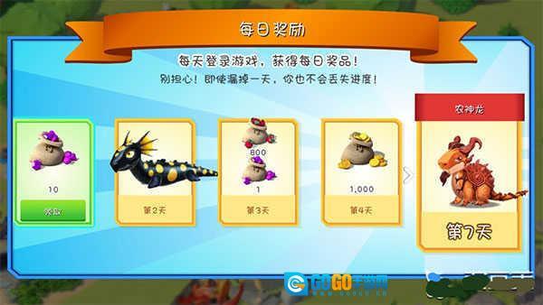 每日登录奖励:连续登录七天可以获得稀有龙种。