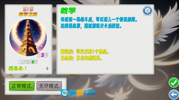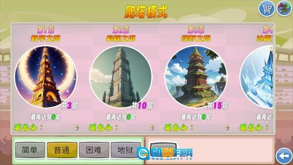 游戏总共有两种玩法模式,爬塔模式和选关模式。