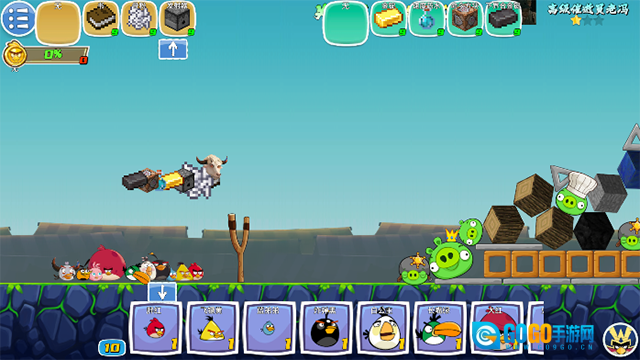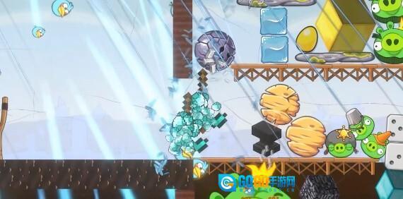 这款游戏的玩法和《愤怒的小鸟》很相似,玩家需要发射小鸟,通过调整发射角度,最终把所有小猪都摧毁掉。