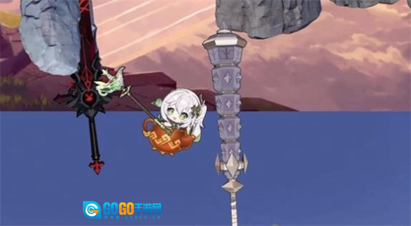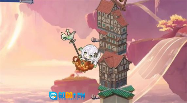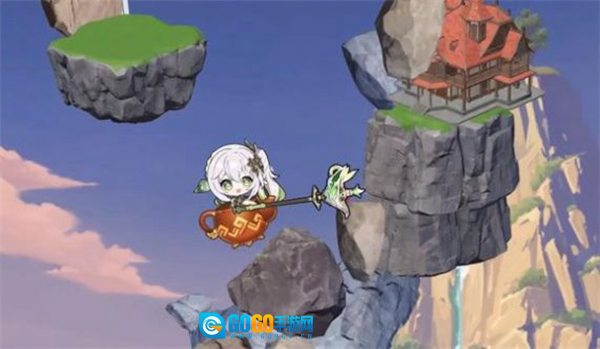 玩家操控纳西妲挥动法杖,借助勾住场景里建筑边缘的方式来移动,得把控好时机和角度,避免从高处跌落。