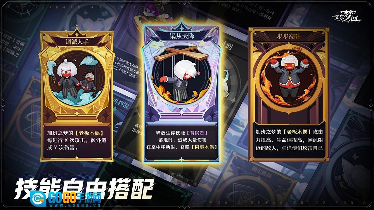 角色与技能:游戏内设有六大流派以及四十余种梦灵角色可供玩家挑选,每个角色都具备独特的技能与成长轨迹。玩家能够依据自身的偏好和游戏需要,自主组合不同的技能以应对各类挑战。