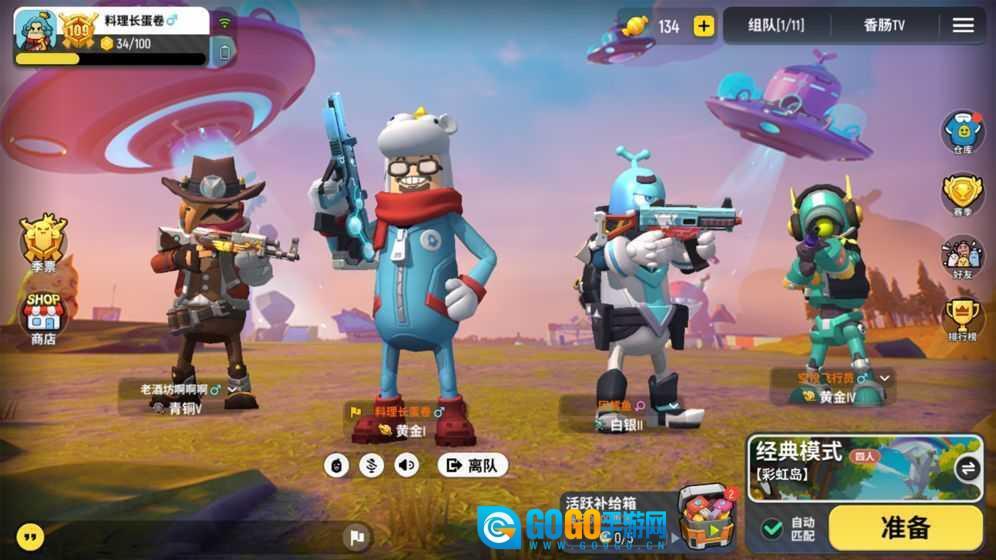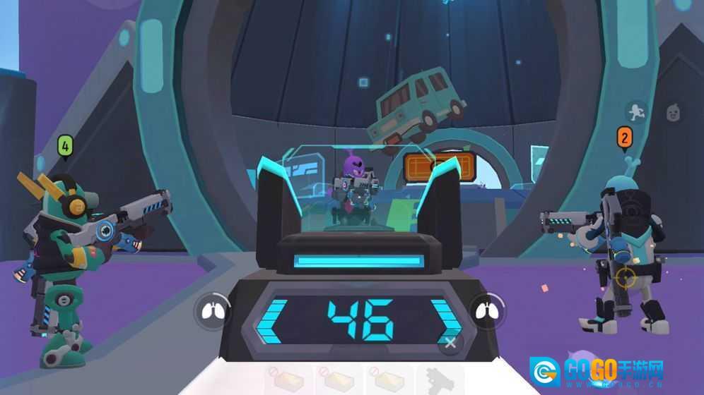 但战场里可不只有激烈的战斗,游戏中到处都能让你感受到欢乐与可爱的氛围。你可以在皮皮球上蹦跳、在滑索上滑行时唱歌跳舞甚至开火,还能用二段跳巧妙避开敌人的精准攻击;套上泳圈在水里和对手正面钢枪也完全没问题;要是不幸被击倒,你会变成委屈哭唧唧的小肠肠;当然,你也能通过加油的动作,把倒在地上的队友扶起来继续战斗。