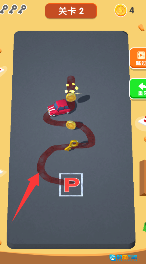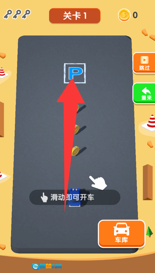 滑动向前就可以开车了,要捡金币喔。