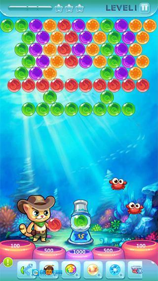 在屏幕上左右滑动来调整瞄准方向,松开手指就能发射泡泡。当泡泡击中两个或两个以上相同颜色的泡泡时,这些同色泡泡就会被消除。