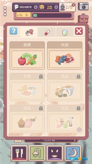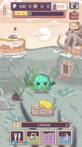 这款游戏没什么复杂剧情,核心操作就是点击,简单到甚至有些单调。要把克苏鲁宠物养大,得喂它吃东西、帮它清洁、满足它的破坏欲,最后还要保证它的睡眠需求。