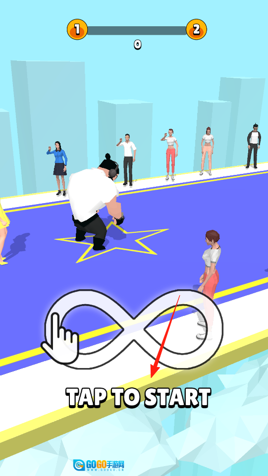 点击“TAP TO START”按钮即可开启挑战,你需要操控角色,在道路场景中做好行动准备,尽情体验竞速对抗的机制。