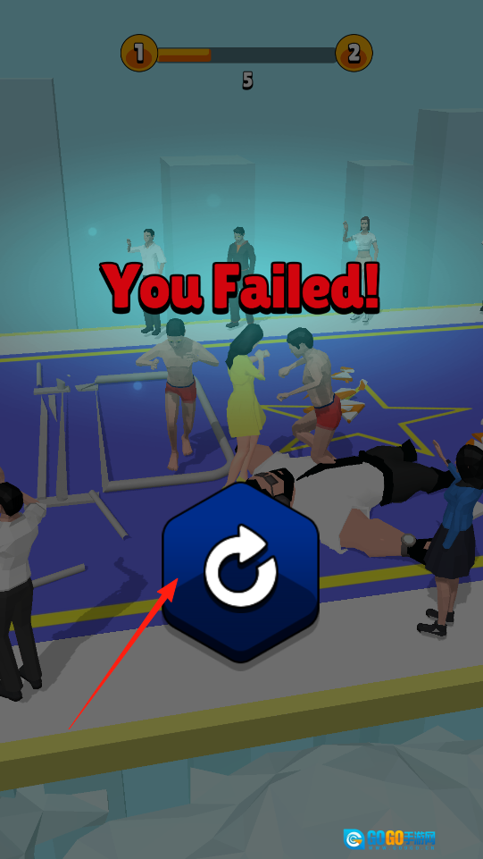 挑战失利后可点击重试或重新开始,调整策略防止摔倒以力求胜利,感受失败重试的机制。