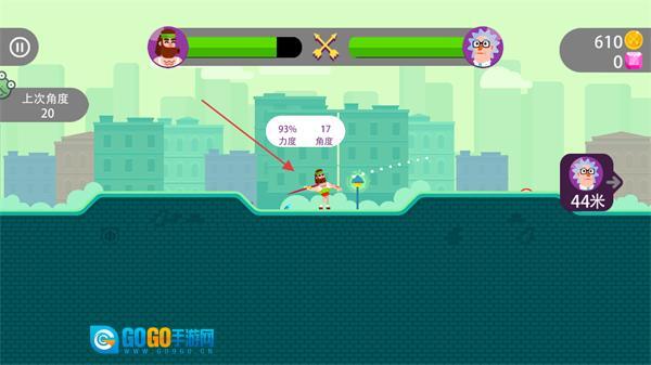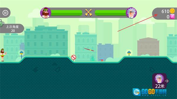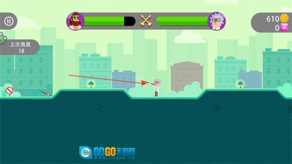 要是没能射中对手,对手就会发起反击,这时候得参照左边上次的角度,重新调整射箭的各项参数。