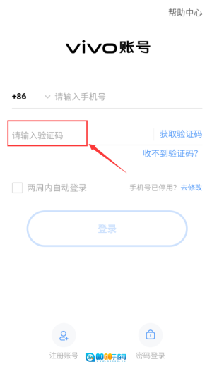 将收到的验证码填写进去红框这里。