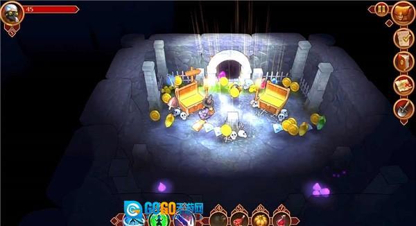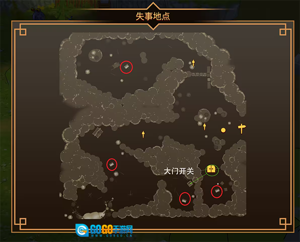 左下角的大门得打开地图上×▲的开关才行,左边那扇大门需要用银钥匙开启,中间的大门得用到齿轮石块;右边大门的开关在中间大门后面哥布林聚集的地方。中间地穴的开启步骤是:先在大门内外都放置齿轮石块,接着依次挪开大门上方的石块,再搬开地穴门口的石块,等中间大门关闭时,地穴大门就会打开了。