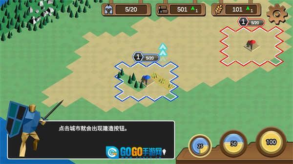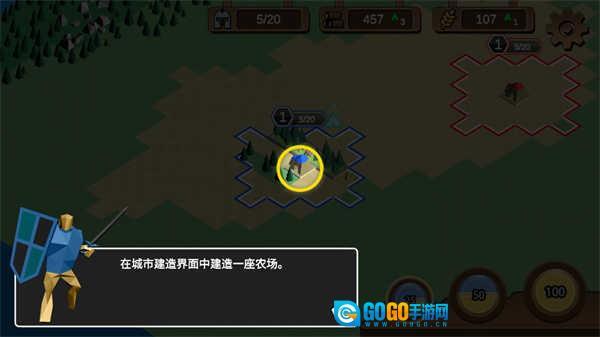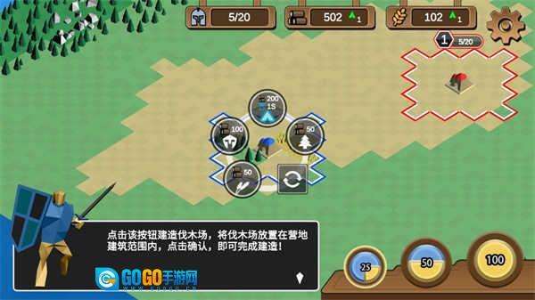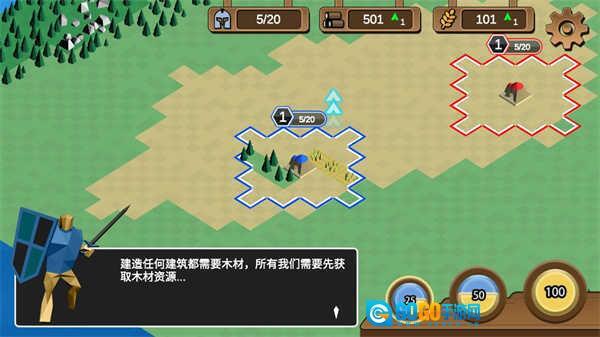 你能够建造伐木场、农田和兵营,进而获取木材、粮食与士兵数量。木材主要用于建筑的建造和升级,粮食是产出士兵的必要资源,兵营则负责训练士兵。因此,玩家需要在这三种建筑以及对应的资源之间进行合理权衡,从而制定出最优的策略。